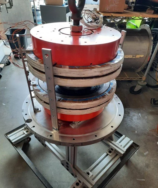 This is the first really tiny plasma source and nested dipole magnetic field, about 5 inches across. It is made with disc and ring NdFeB permanent magnets. It’s too small to actually work. But shows the concept.